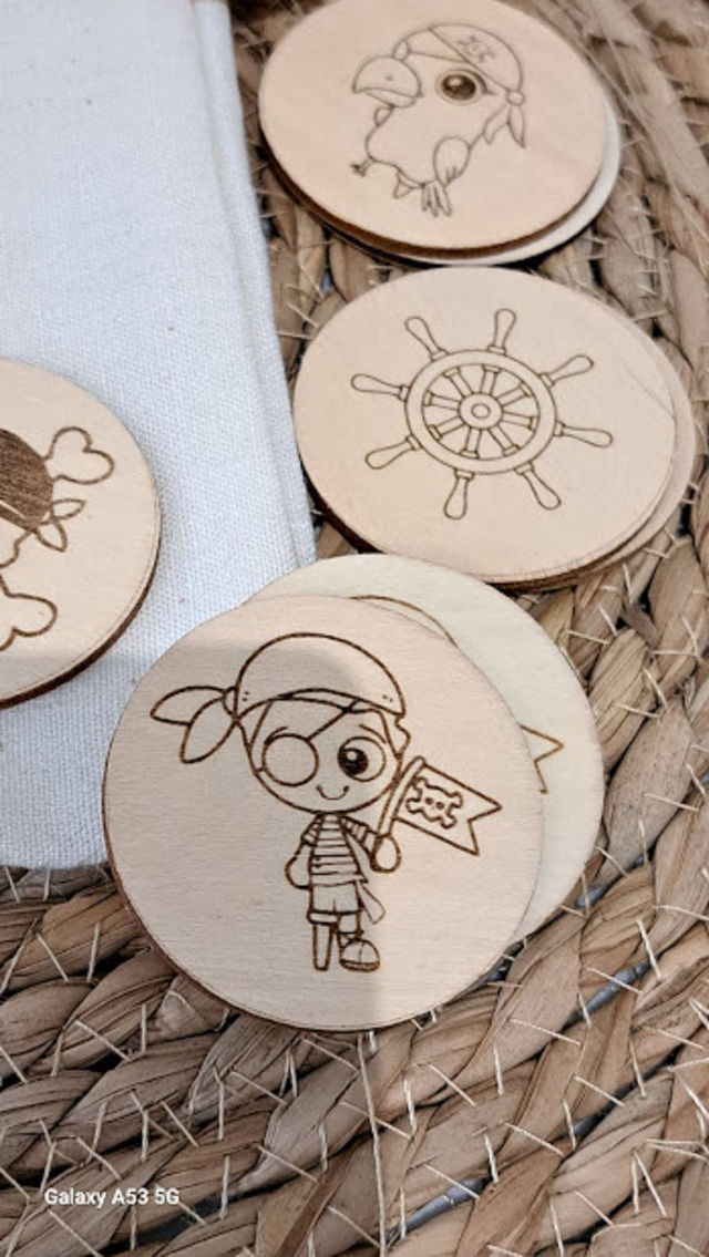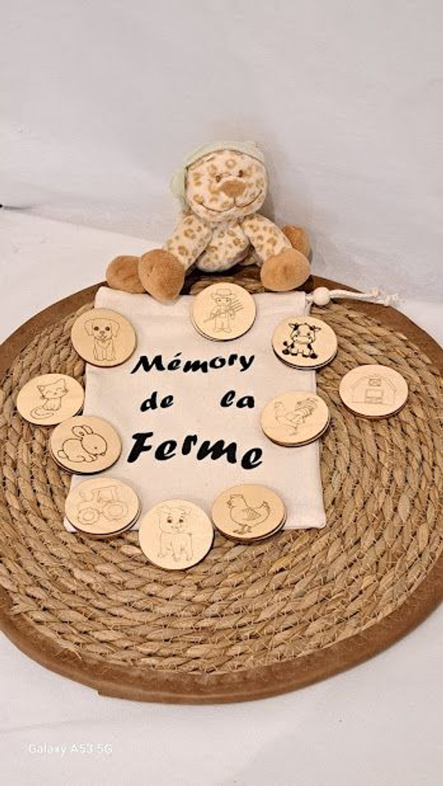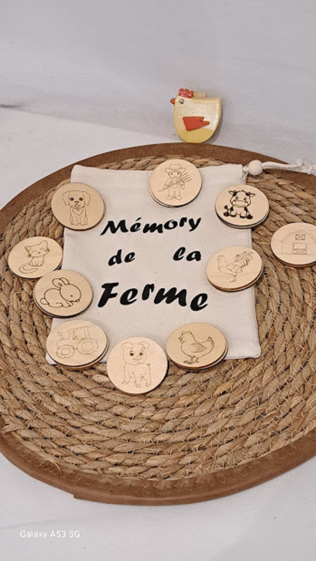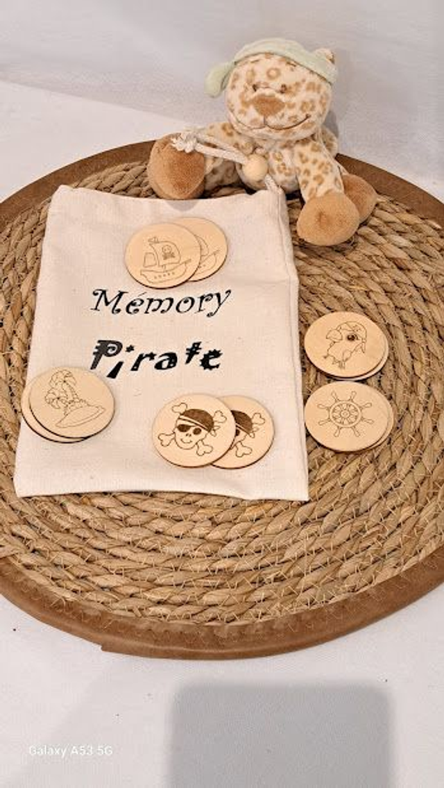 Jeu de mémoire en bois Memory pirate/ferme dans pochon de rangement , Jeu à manipuler, Cadeau enfant