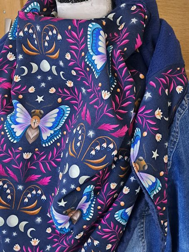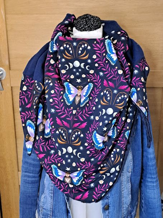 Maxi Chèche femme / chèche minky bleu et tissus jersey motifs chouettes/ écharpe pour femme