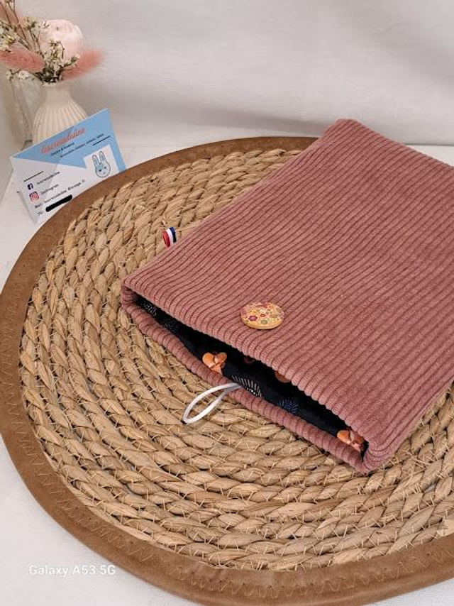 Pochette Molletonnée Livre de poche / idée cadeau - Velours côtelé et coton fleuri