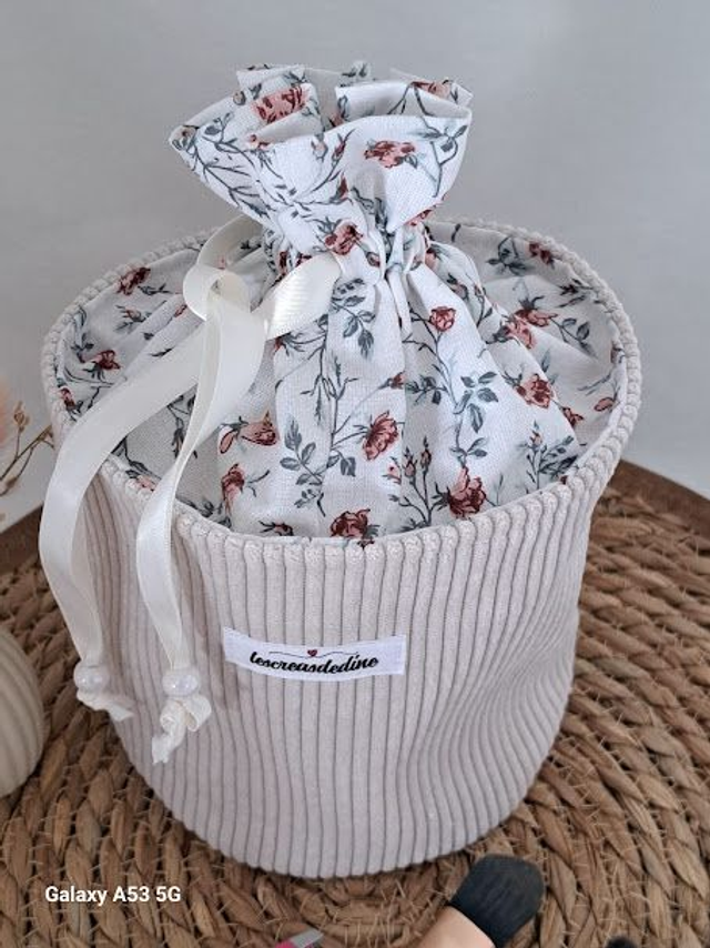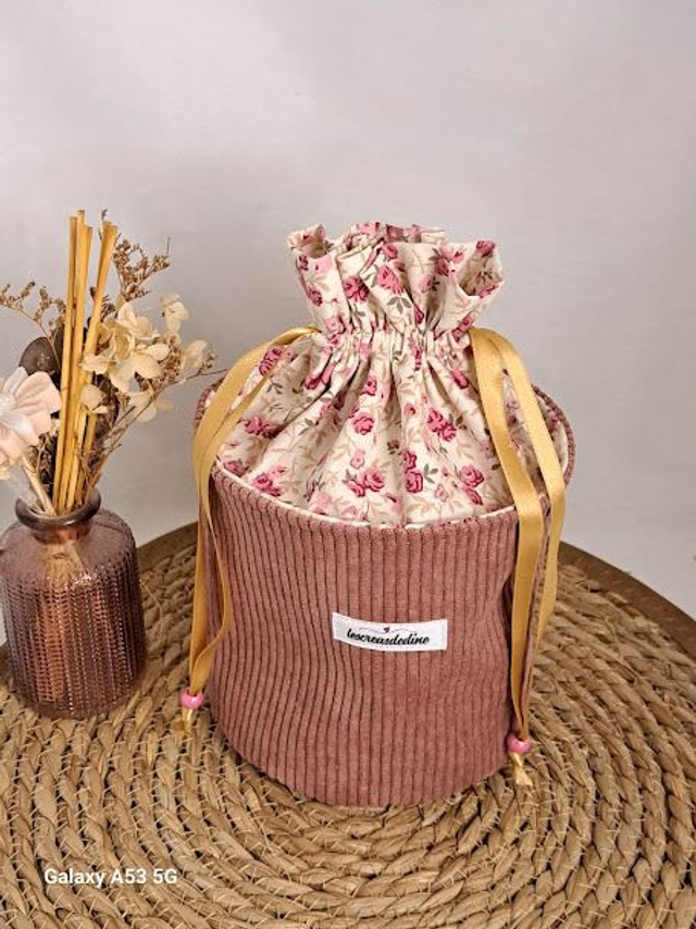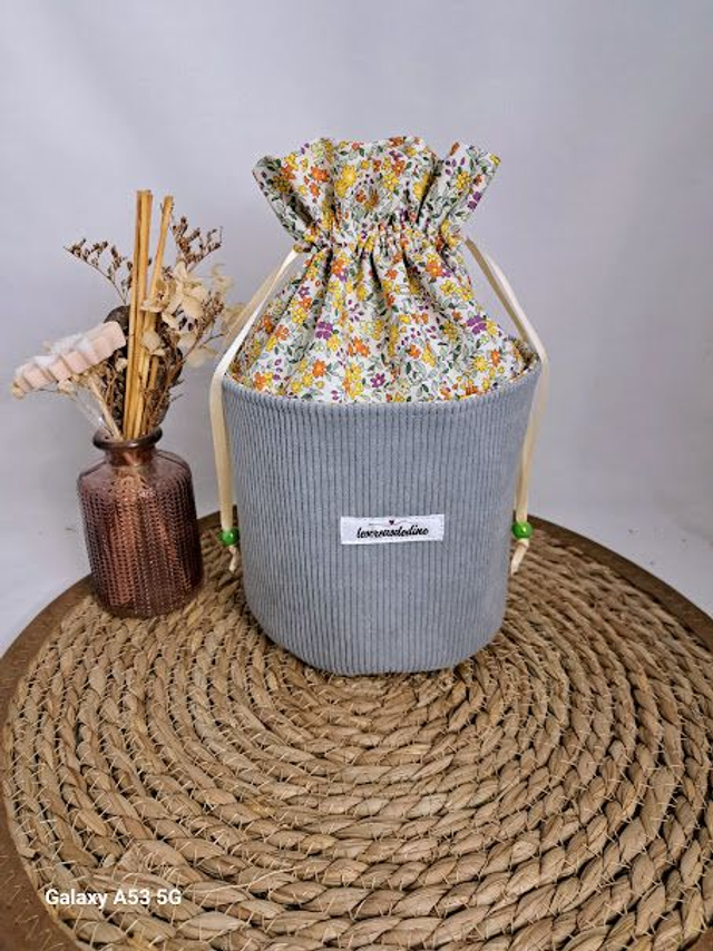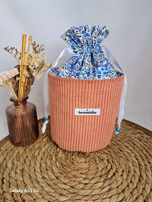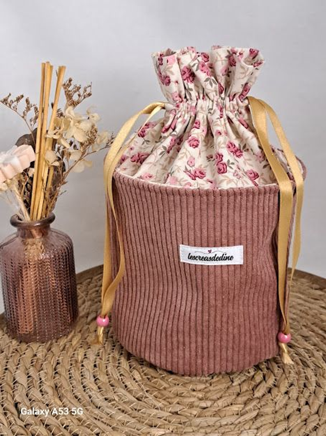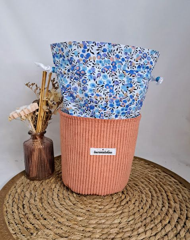 Réalisés dans un tissus velours côtelé, et d'un tissus coton aux motifs fleuris.