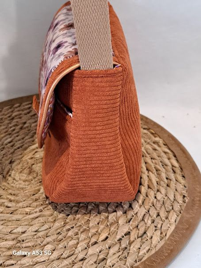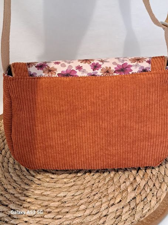 Sac bandoulière en velours cotelé marron