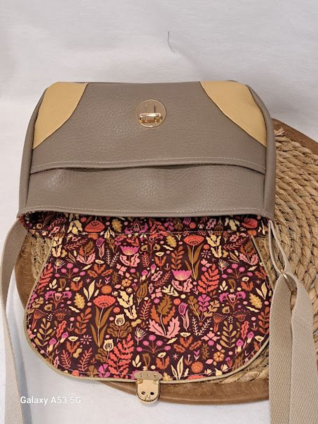 L'intérieur du sac est en tissu coton motifs de fleurs comme sur le rabat du sac.