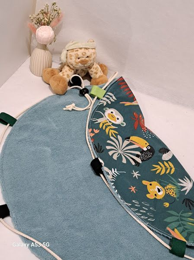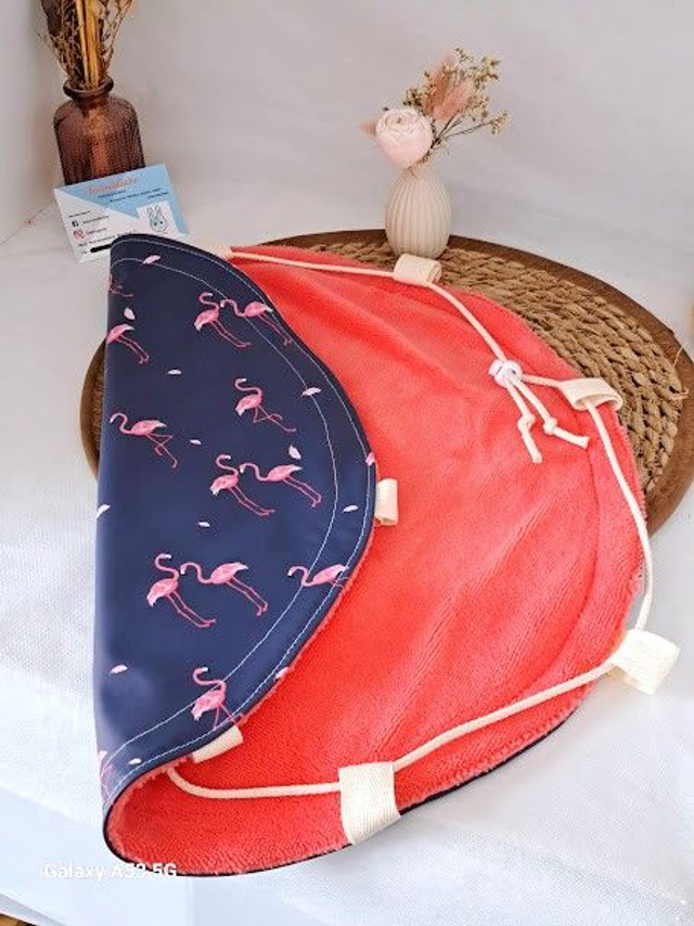Tapis/Sac sortie de piscine pour garder les pieds au sec.